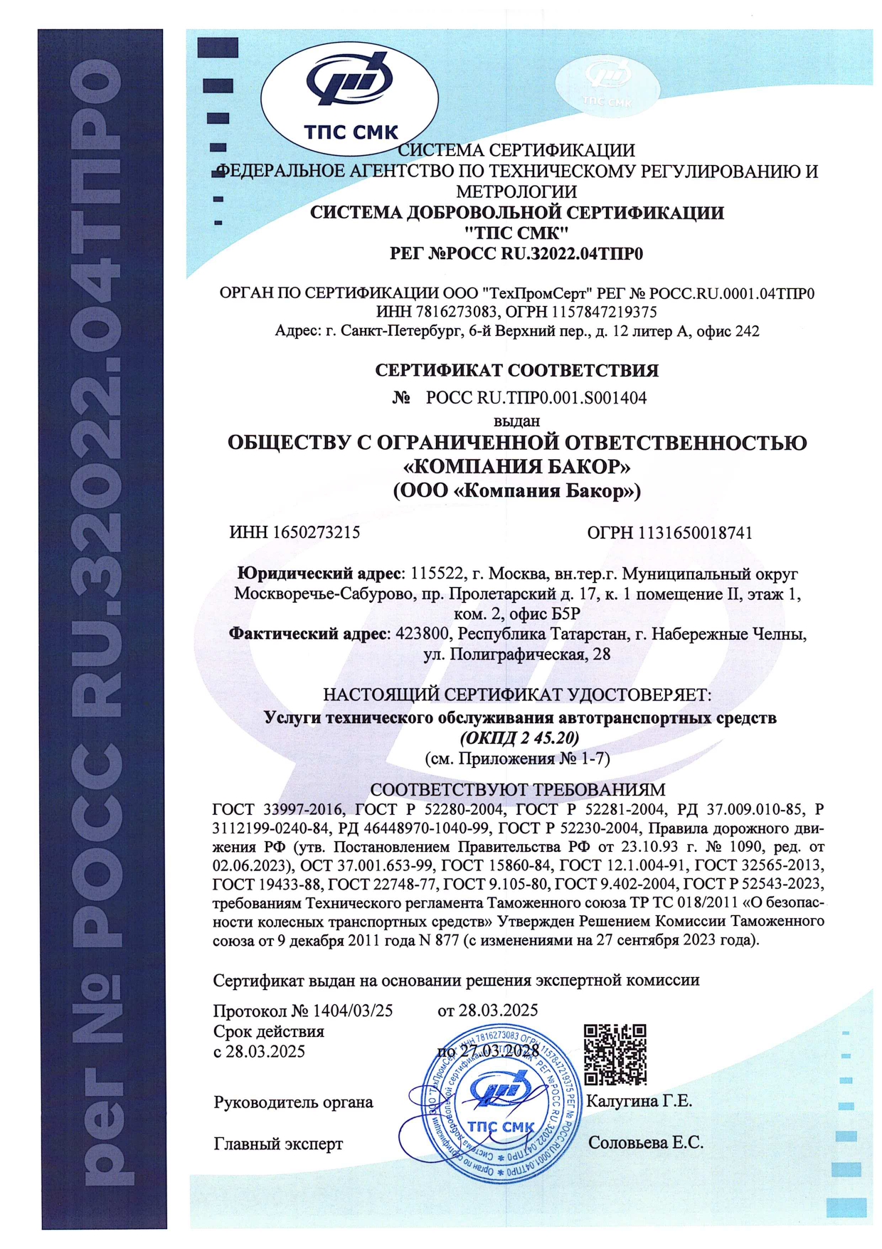 Сертификат установки
